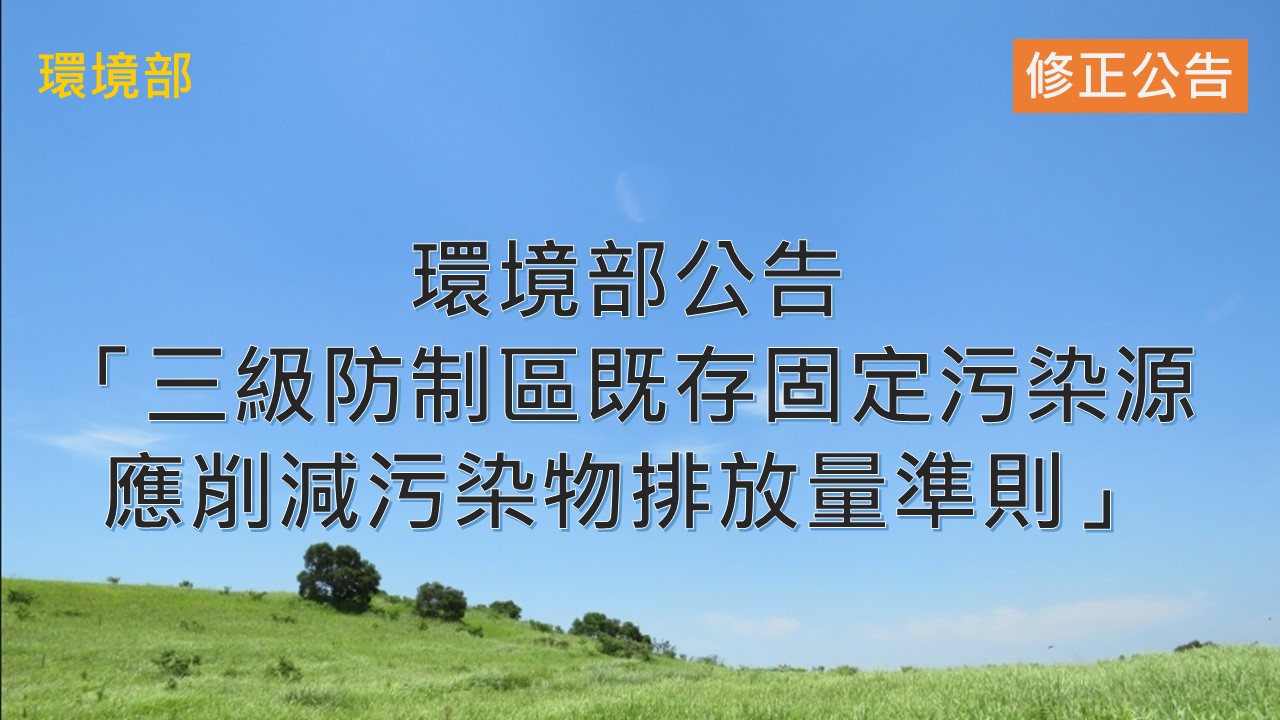 公告「三級防制區既存固定污染源應削減污染物排放量準則」