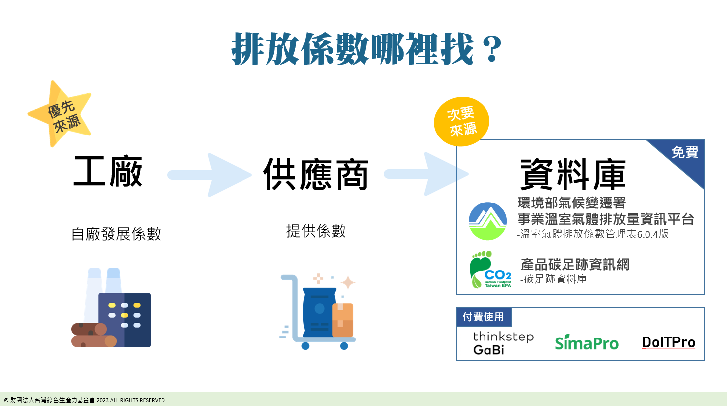 ::: 知識懶人包 排放係數哪裡找 發佈日期:2023/11/01 資料來源:經濟部產業發展署產業節能減碳資訊網 點閱次數:3872 回前一頁 此段 JavaScript 提供回上一頁功能,若瀏覽器不支援 JavaScript,請使用鍵盤 Backspace 或瀏覽器回上一頁功能