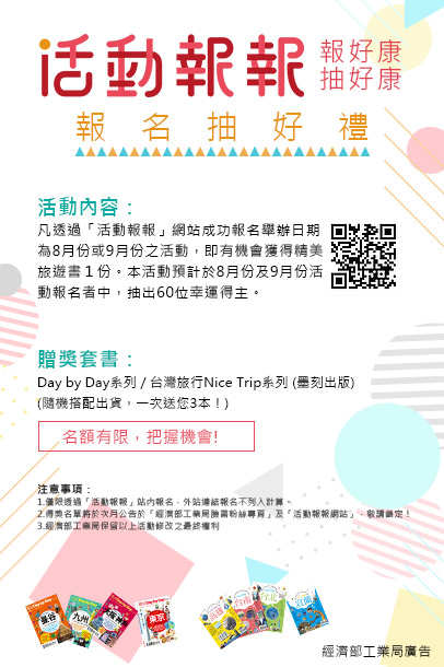 | 報名方式 | 凡透過「活動報報」成功報名舉辦日期為8月份或9月份活動者 |