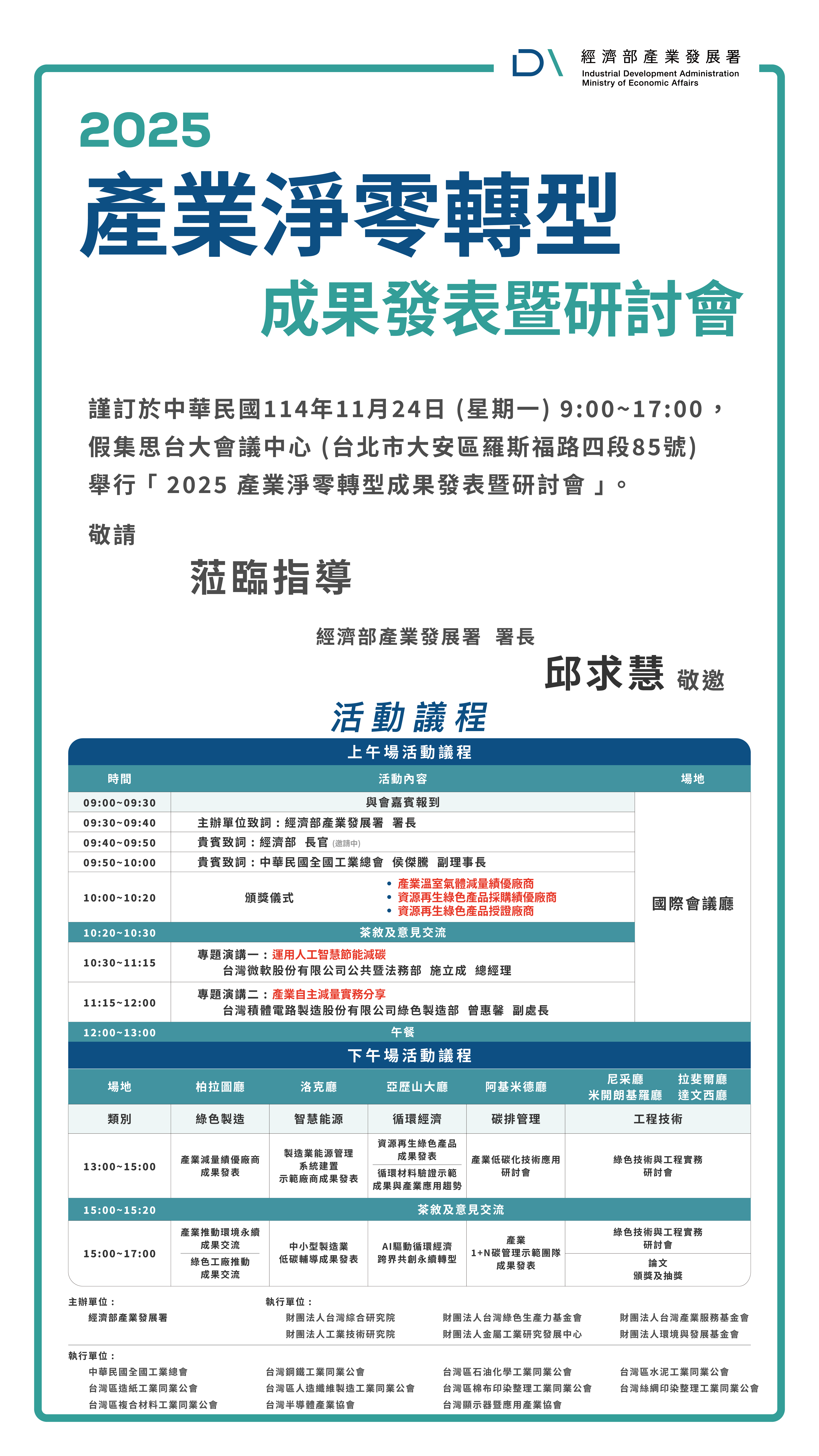 ✨ 活動豐富多元,無論是業界人士或一般民眾,都期待您的參與,共同推動台灣產業邁向淨零新里程!